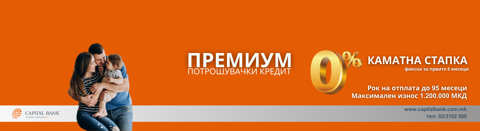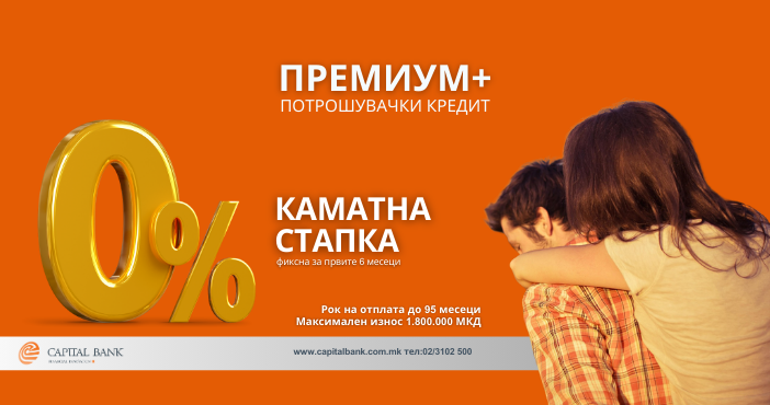 • За Рефинансирање на кредит во Капитал банка со исплата на дополнителни средства од најмалку 30% од износот кој се рефинансира